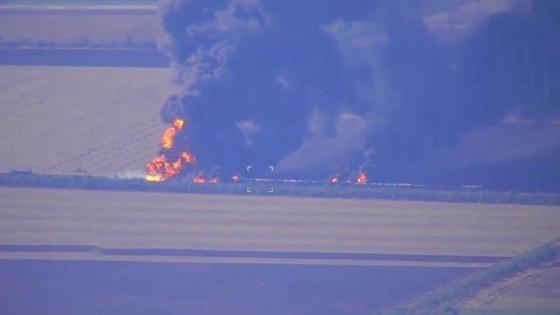 প্রকাশিত ভিডিওতে দেখা গেছে, দীর্ঘ ট্রেনের ডজনখানেক বগি আগুনে পুড়ে ছাই হয়ে যাচ্ছে। ট্রেনটি জাপোরিঝঝিয়ার দক্ষিণাংশে উরোজায়নি ও তোকমাকের মাঝামাঝি স্থানে লাইনচ্যুত হয়। তবে কীভাবে এই হামলা চালানো হয়েছে সে ব্যাপারে এখনো কোনো আনুষ্ঠানিক তথ্য মেলেনি।