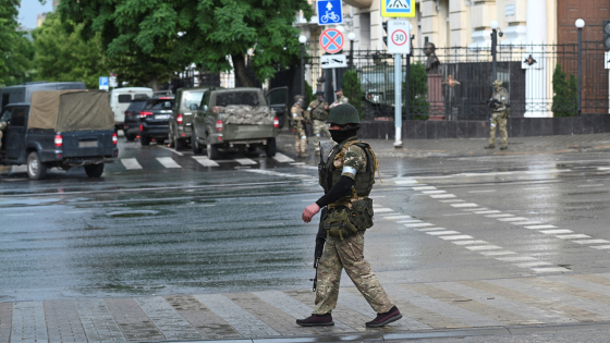 রাশিয়ার দক্ষিণাঞ্চলের একটি সেনা সদরদপ্তরের নিয়ন্ত্রণ নিয়েছে রুশ ভাড়াটে সেনা ওয়াগনার গ্রুপ। সামাজিক যোগাযোগমাধ্যমে ছড়িয়ে পড়া একটি ভিডিওতে দেখা যায়, রাশিয়ার সেনাবাহিনীর দক্ষিণাঞ্চলের সেনা সদরদপ্তরে বিচরণ করছে ওয়াগনার সেনারা। আর সেটির ভেতর অবস্থান করছেন রুশ ভাড়াটে সেনাবাহিনী ওয়াগনার প্রধান ইয়েভগিনি প্রিগোজিন।