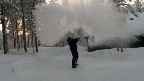 কয়েক দিন ধরেই প্রচণ্ড ঠান্ডায় কাবু ইউরোপের দেশ ফিনল্যান্ড। তাপমাত্রা হিমাঙ্কের বেশ নিচে বিরাজ করছে। চার দিক বরফের সাদা চাদরে মোড়ানো। শীতের মাত্রা এতই বেশি যে বাতাসে গরম পানি ছোড়ার সঙ্গে সঙ্গে তা জমে বরফ হয়ে যাচ্ছে!