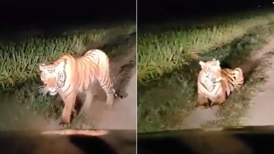 প্রশান্ত পান্ডে নামে এক ব্যক্তি ভিডিওটি এক্সে শেয়ার করেছেন। সেখানে দেখা যায়, রাতের বেলা আখক্ষেতে বাঘটি ঘুরে বেড়াচ্ছে। ভিডিওটি একটি গাড়ির ভেতর থেকে ধারণ করা হয়েছে। আর বাঘটি সেই গাড়িটি থেকে মাত্র কয়েক মিটার দূরেই ছিল।
