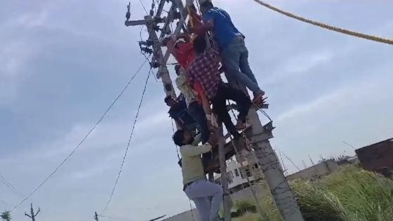 #UttarPradesh | Man Busts Wife's Extramarital Affair, She Climbs Electric Pole Read Here: https://t.co/bdbBgeK5vK pic.twitter.com/yUKyh42Gyd