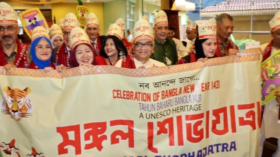 কুয়ালালামপুরে ক্রাফট কমপ্লেক্সে আয়োজিত বাংলার ঐতিহ্যবাহী মঙ্গল শোভাযাত্রায় বিদেশি অতিথিসহ দূতাবাস পরিবার এর সদস্যরা বিপুল উৎসাহ ও উদ্দীপনার সঙ্গে অংশগ্রহণ করেন।