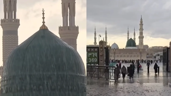 সৌদি আরবের পবিত্র শহর মদিনায় বৃষ্টিপাত হয়েছে। এই বৃষ্টিতে ভিজেছে মসজিদে নববী ও তার আশপাশের এলাকা। দুই পবিত্র মসজিদ বিষয়ক ওয়েবসাইট ‘ইনসাইড দ্য হারামাইন’ বৃহস্পতিবার তাদের ফেসবুক পেজে একটি ভিডিও প্রকাশ করেছে। এতে দেখা যাচ্ছে, মসজিদ প্রাঙ্গণ ও বিখ্যাত সবুজ গম্বুজটি ঝুমবৃষ্টিতে ভিজছে।