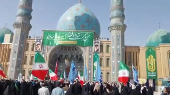 ইরানের রাজধানী থেকে ১৪০ কিলোমিটার (৮৭ মাইল) দক্ষিণে দেশের অন্যতম পবিত্র শহরটিতে জড়ো হওয়ার সময় বিক্ষোভকারীরা ইরানের পতাকা উড়িয়ে ইসরায়েলবিরোধী স্লোগান দেন।
