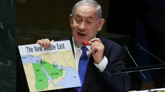প্রতিবেদনে বলা হয়েছে, শুক্রবার জাতিসংঘে ভাষণ দেওয়ার সময় মধ্যপ্রাচ্যের দুটি মানচিত্র দেখান নেতানিয়াহু। প্রথমটি ইসরাইল রাষ্ট্র সৃষ্টির বছর ১৯৪৮ সালের। আর পরেরটিকে তিনি আখ্যা দেন নব্য মধ্যপ্রাচ্য নামে। সেখানে অধিকৃত পশ্চিম তীর ও গাজা উপত্যকাকে ইসরাইলের অংশ দাবি করা হয়। এর পরপরই এ নিয়ে তীব্র প্রতিবাদ জানায় ফিলিস্তিনি।