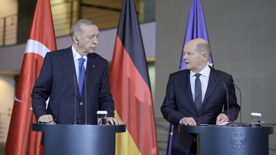 রাশিয়া ইউক্রেনে হামলা চালানোর সাথে সাথে মস্কোর বিরুদ্ধে উঠেপড়ে লাগে পশ্চিমা বিশ্ব। পুতিন বাহিনীর বিরুদ্ধে যুদ্ধ করতে কিয়েভে পাঠায় লাখ লাখ ডলারের অস্ত্র সহায়তা। কিন্তু ইসরায়েল যেভাবে গাজায় হামলা চালাচ্ছে তার বিরুদ্ধে কোনো আওয়াজ তুলছে না ইউরোপ-আমেরিকা। উল্টো সাফাই গাচ্ছে হামলার। এমনকি যুদ্ধবিরতির প্রস্তাবের ভেটো দিচ্ছে আমেরিকা। এবার বার্লিনে পা রেখে জার্মান চ্যান্সেলরকে তুলাধুনা করলেন তুর্কি প্রেসিডেন্ট রিসেপ তাইয়েপ এরদোয়ান। বলেন, হাসপাতালে ঢুকে গুলি করা অথবা শিশুদের হত্যা করার নজির সভ্য সমাজে নেই। এ জন্য এই অঞ্চলে ইহুদি, খ্রিষ্টান ও মুসলমানদের মধ্যে কোনো বৈষম্য করা উচিত নয়। বলেন, তিনি সব ধর্মকেই সমানভাবে দেখেন। জার্মানিতে ইহুদি বিদ্বেষ অবৈধ। কারণ এ দেশটিতেই ইহুদিরা গণহত্যার শিকার হন। এরদোয়ান মনে করেন, এ জন্যই জার্মানি স্বাধীনভাবে ইসরায়েল-হামাস যুদ্ধ নিয়ে কথা বলতে পারছে না। জার্মানির চ্যান্সেলর শলৎজের উদ্দেশে এরদোয়ান বলেন, জার্মানি ইসরায়েলের কাছে দায়বদ্ধ। কারণ তারা দ্বিতীয় বিশ্বযুদ্ধের সময় ইহুদিদের বিরুদ্ধে গণহত্যা চালিয়েছে। কিন্তু ইসরায়েলের প্রতি তুরস্কের কোনো দায় নেই। এ কারণে তারা প্রকাশ্যে যা খুশি তাই বলতে পারেন। শুক্রবার বার্লিনে জার্মানির চ্যান্সেলর ওলাফ শলৎজের সঙ্গে বৈঠকের পর এক সংবাদ সম্মেলনে তিনি এ কথা বলেন। এর আগে গাজায় ইসরায়েলে যুদ্ধ নিয়ে সমালোচনা করায় এরদোয়ান জার্মানিতে পৌঁছানোর পর তোপের মুখে পড়েন। গেল ৭ অক্টোবর ইসরায়েলে নজিরবিহীন হামলা চালায় ফিলিস্তিনির স্বাধীনতাকামী সংগঠন হামাস। এর পর থেকে নির্বিচারে বিমান হামলা চালিয়ে আসছে ইসরায়েল। গুঁড়িয়ে দেওয়া হচ্ছে একের পর এক ভবন। টার্গেট করে হামলা চালানো হচ্ছে অবরুদ্ধ গাজা উপত্যকার হাসপাতালে। শুরু থেকেই ইসরায়েলি বাহিনীর এই হামলার নিন্দা জানিয়ে আসছে তুরস্ক। সৌদি আরবে মুসলিম দেশগুলোর সম্মেলনে অংশ নিয়েও দিয়েছেন ইরাসয়েলের বিরুদ্ধে কড়া বার্তা। তুরস্কের প্রেসিডেন্ট এরদোয়ান ইসরায়েল ও ফিলিস্তিনের বিরোধের স্থায়ী সমাধানে আন্তর্জাতিক শান্তি সম্মেলনের আহ্বান জানান। তিনি বলেন, গাজায় যা দরকার তা কয়েক ঘণ্টার বিরতি নয়, বরং স্থায়ী যুদ্ধবিরতি দরকার। এর আগে ইসরায়েলের প্রতি নিন্দা জানিয়ে তেলআবিব থেকে রাষ্ট্রদূত প্রত্যাহারের মতো সিদ্ধান্ত নেয় আঙ্কারা। নেতানিয়াহু সরকারকে প্রতিহতের হুঁশিয়ারি পর্যন্ত দেওয়া হয়।