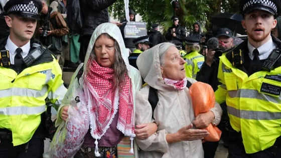 ফিলিস্তিনি-পন্থী গ্রুপকে নিষিদ্ধ করার প্রতিবাদে টানা তৃতীয় শনিবার মধ্য লন্ডনে বিক্ষোভকারীরা জড়ো হন। এ সময় পুলিশ তাদের ছত্রভঙ্গ করে দেয় এবং অংশগ্রহণকারী ৫৫ জনকে গ্রেপ্তার করে। পুলিশ বলছে, নিষিদ্ধ সংগঠনটিকে সমর্থন করা অপরাধ। তাই তারা আইনের প্রয়োগ করেছেন।