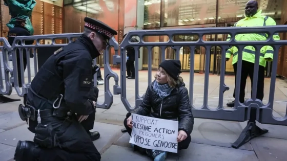 সিটি অব লন্ডন পুলিশ ২২ বছর বয়সী এক নারীকে আটক করা হয়েছে বলে নিশ্চিত করেছে। পুলিশ জানায়, তিনি সন্ত্রাসবাদ আইন ২০০০-এর ১৩ ধারার আওতায় নিষিদ্ধ ঘোষিত সংগঠন প্যালেস্টাইন অ্যাকশনকে সমর্থন জানিয়ে প্ল্যাকার্ড প্রদর্শন করছিলেন।