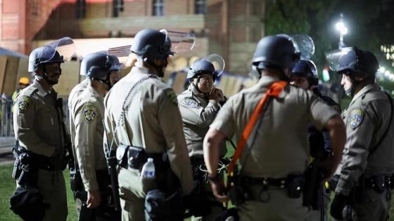 যুক্তরাষ্ট্রের লস অ্যাঞ্জেলেসের ক্যালিফোর্নিয়া বিশ্ববিদ্যালয়ে বিপুল পুলিশ অবস্থান নিয়েছে। তারা পুরো ক্যাম্পাস ঘিরে ফেলেছে। গাজা যুদ্ধ বন্ধে আন্দোলনরত শিক্ষার্থীদের সরাতে পুলিশ যেকোনো সময় অভিযান শুরু করতে পারে। এ নিয়ে সেখানে তীব্র উত্তেজনা বিরাজ করছে।